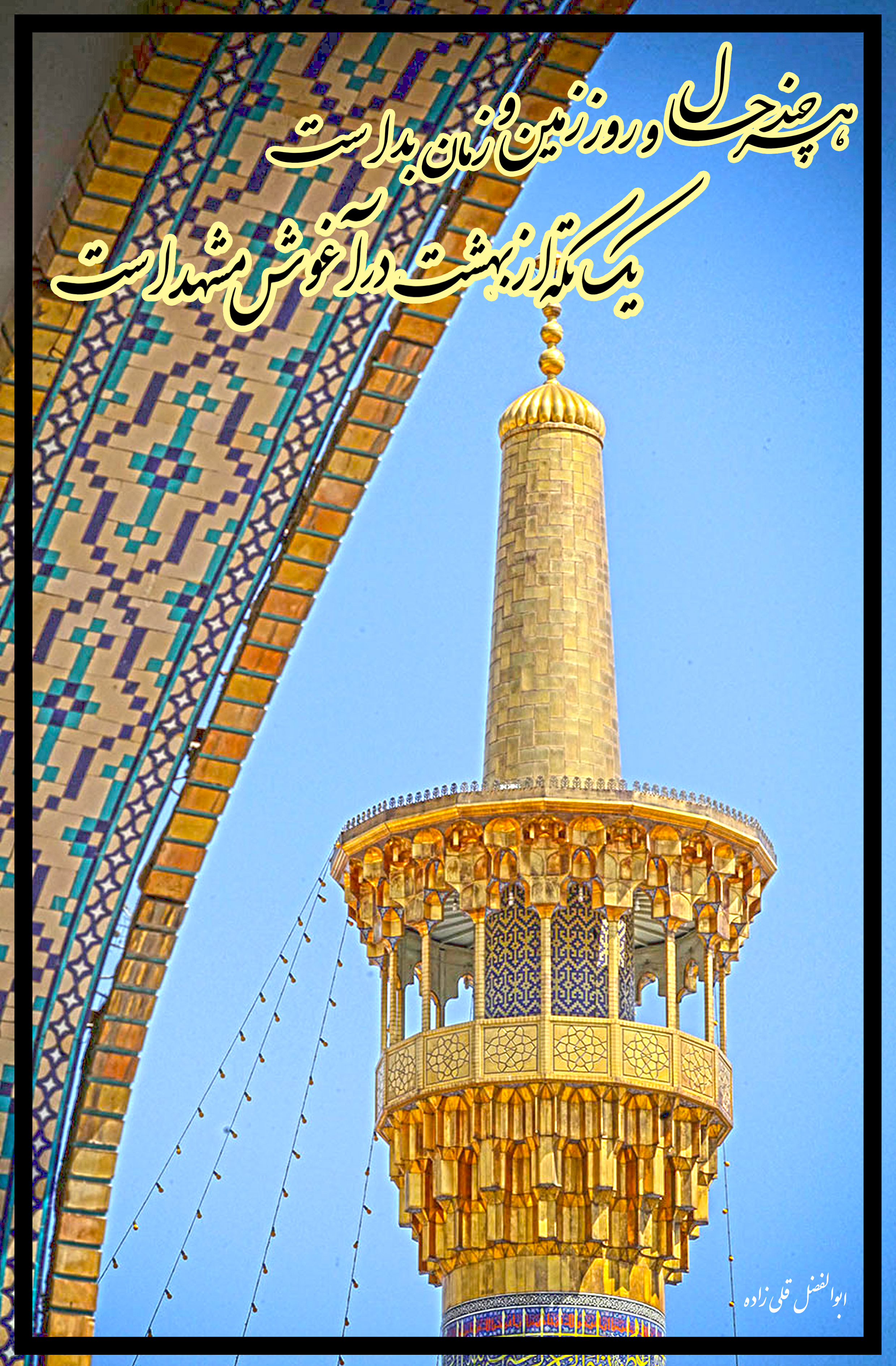 امروز دلسنگیهایم را به دلتنگیهایم برای صحن اسماعیل طلای امام رضا میبخشی. که مطمئنم الان دعاگویم است. که امام رئوف است. که رئوف ترین است. که مهربانترین سلطان عالم است خاصه برای ما ایرانی ها...